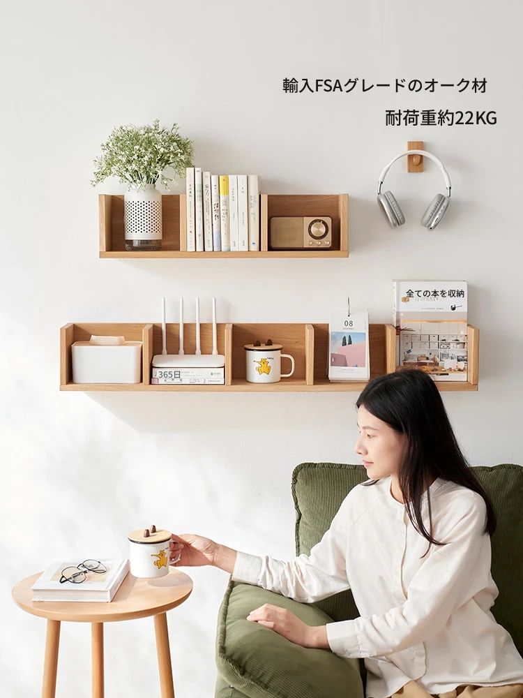 壁掛け本棚・実木製のウォールシェルフ!寝室やリビングに最適な収納スペースを提供。テレビの壁面を美しく彩る多段式収納ラックで、お部屋をスッキリおしゃれに!