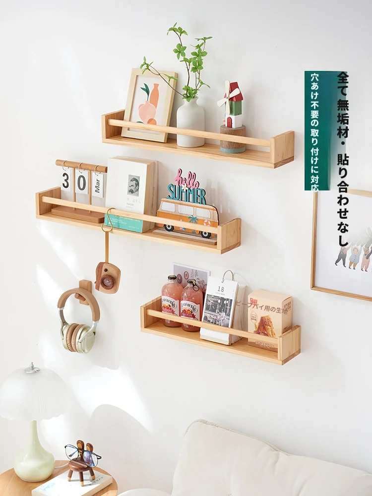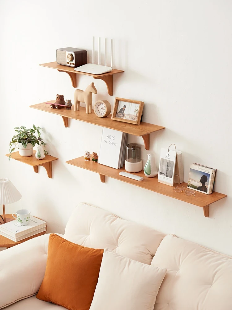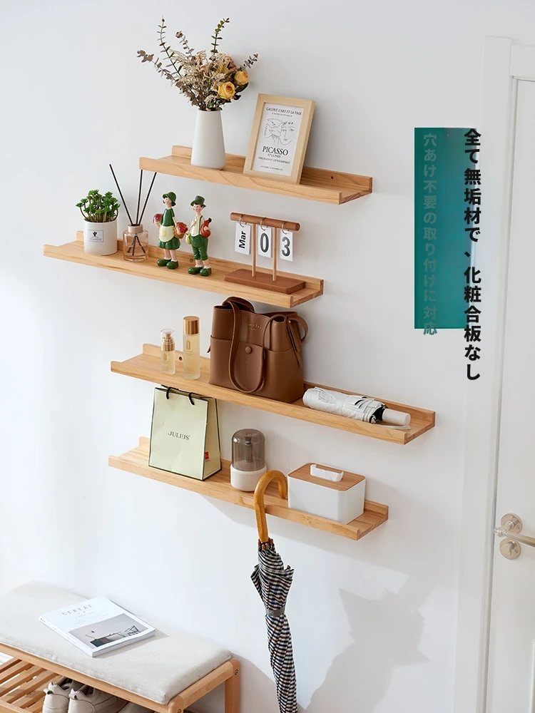 壁掛け式無孔実木シェルフ - リビング、ダイニング、キッチンに最適なスタイリッシュな一文字板。おしゃれで実用的な収納スペースを提供し、インテリアを一新!