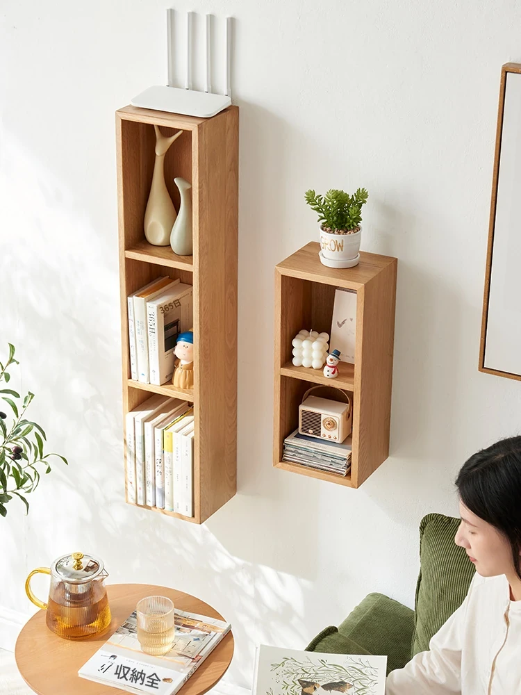 実木製壁掛けシェルフ、スタイリッシュな書棚とフロア収納、寝室やリビングに最適なコンビネーションボックス、デスク上の整理整頓に最適です!お部屋を美しく整える、機能性とデザインを兼ね備えた収納ラック。