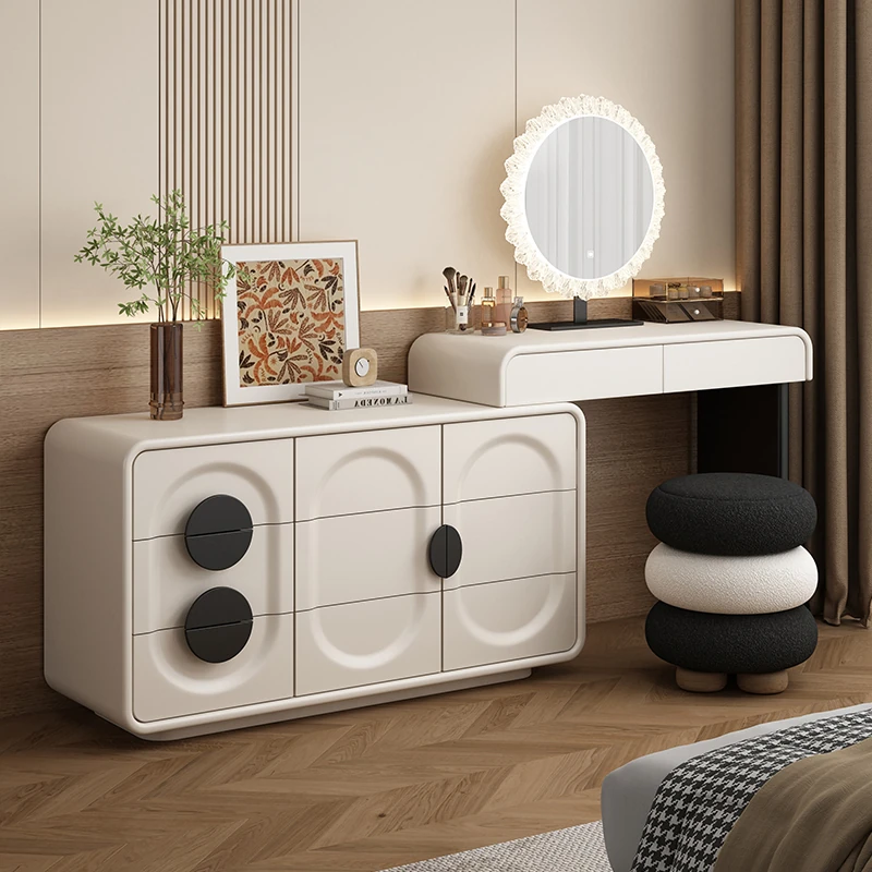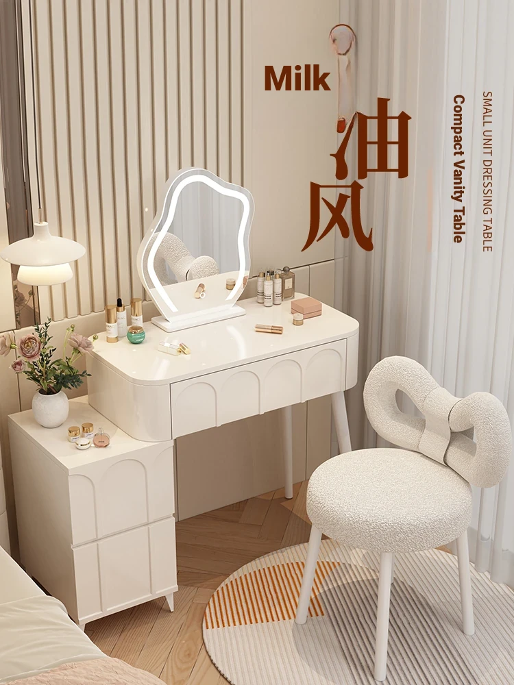 Modern Minimalist Cream Wind Makeup Vanity for Small Spaces - 2023 New High-End Bedroom Dresser and Integrated Makeup Table. Perfect for Stylish and Cozy Living!