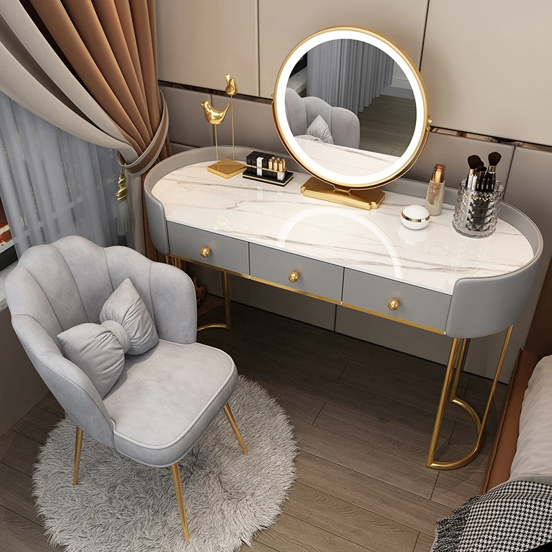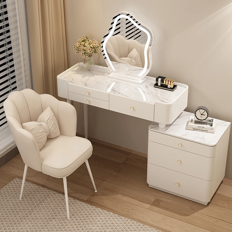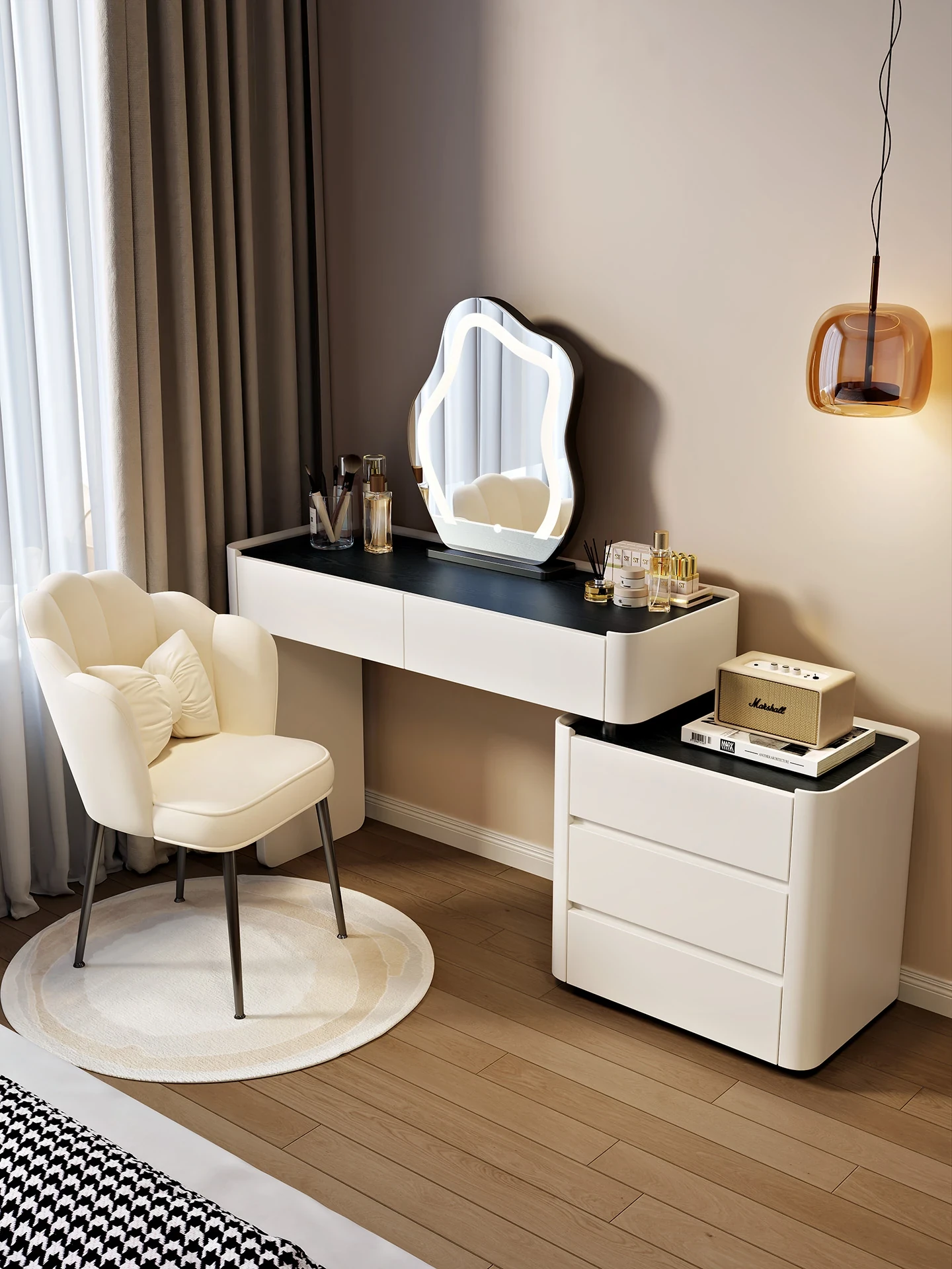 Modern Minimalist Solid Wood Makeup Vanity with Rock Board - Elegant and Luxurious Storage Solution for Small Spaces, Perfect for Your Bedroom