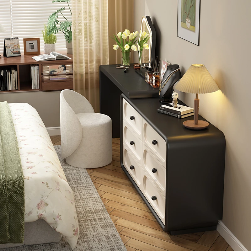 Modern Minimalist Dressing Table with Six-Drawer Storage Chest – Luxurious Cream White Makeup Desk for a Chic Bedroom Upgrade.