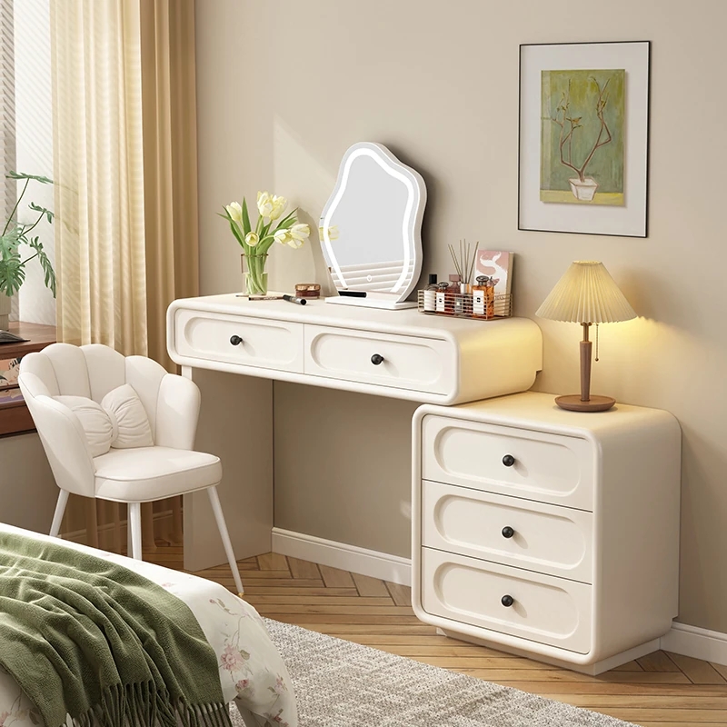 2025 Smart Cream-Style Vanity Dresser Combo - Modern Minimalist Solid Wood Makeup Table for Small Bedrooms - Perfect for Princesses