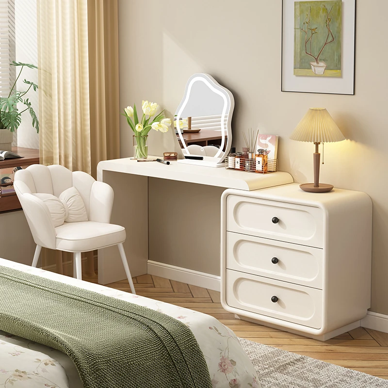 Modern Minimalist Solid Wood Cream Makeup Vanity with Integrated Storage Drawer - 2024 New Luxury Design for Your Bedroom