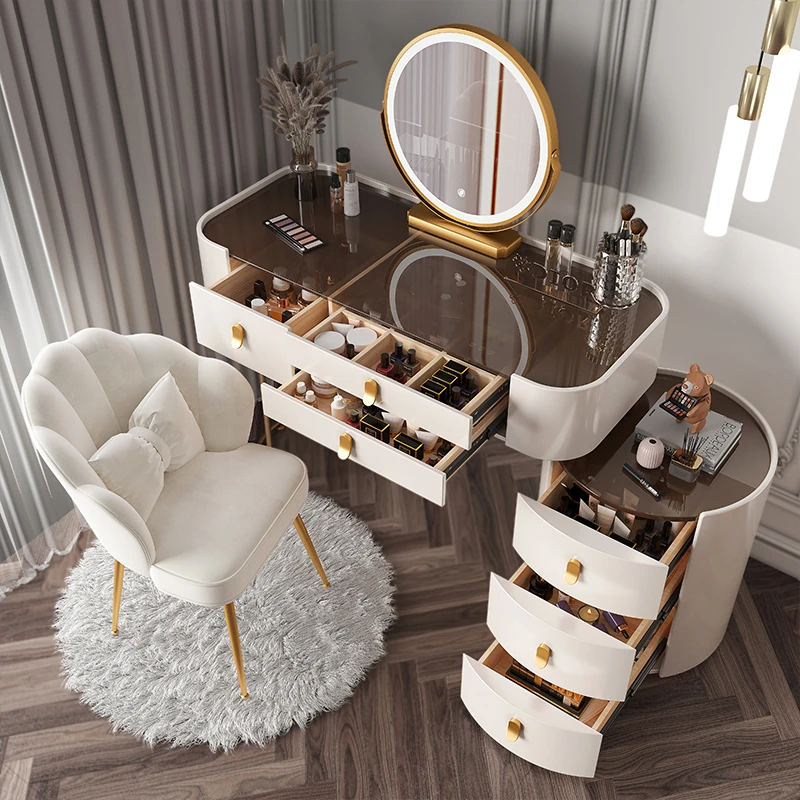 2022 New French-style Luxury Makeup Vanity - Modern Minimalist Dressing Table with Integrated Storage Cabinet for Elegant Bedrooms