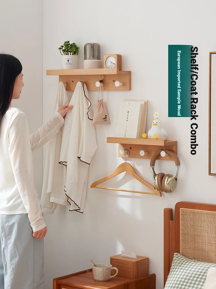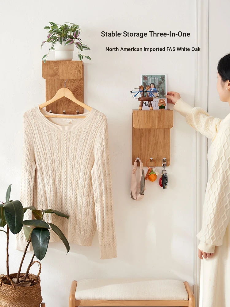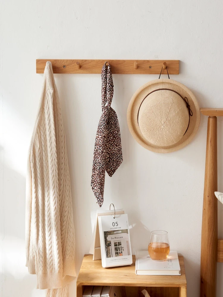Multipurpose Solid Wood Wall-Mounted Clothes Rack - Nordic Style Oak Coat Hooks for Entryway, Ideal for Home Use, Stylish and Functional Clothing Hanger