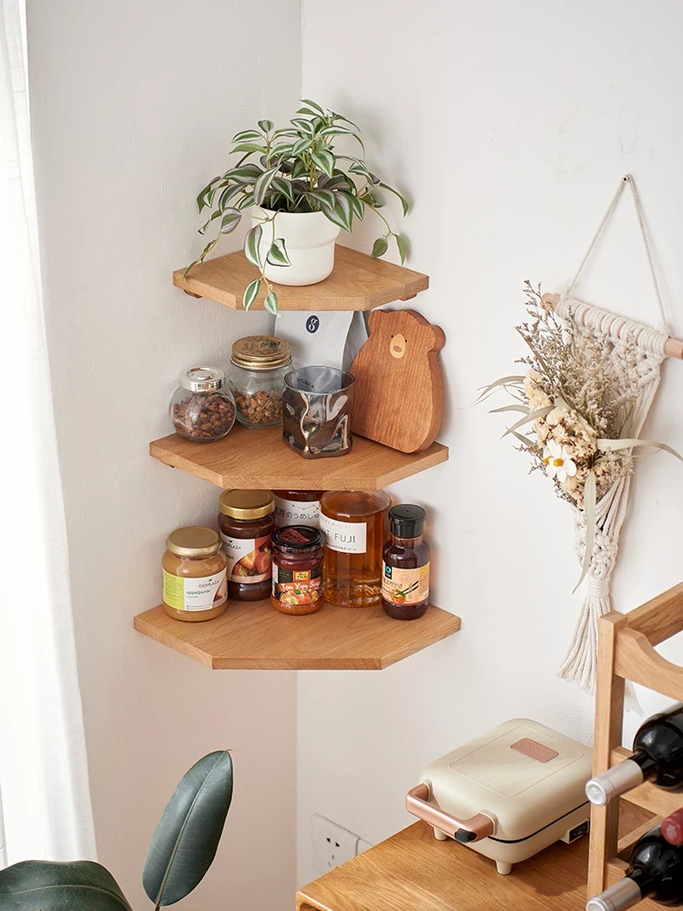 Solid Wood Corner Wall Shelves - Multifunctional Polygonal Storage Rack for Living Room and Kitchen - Stylish Corner Organizer for Books and Décor