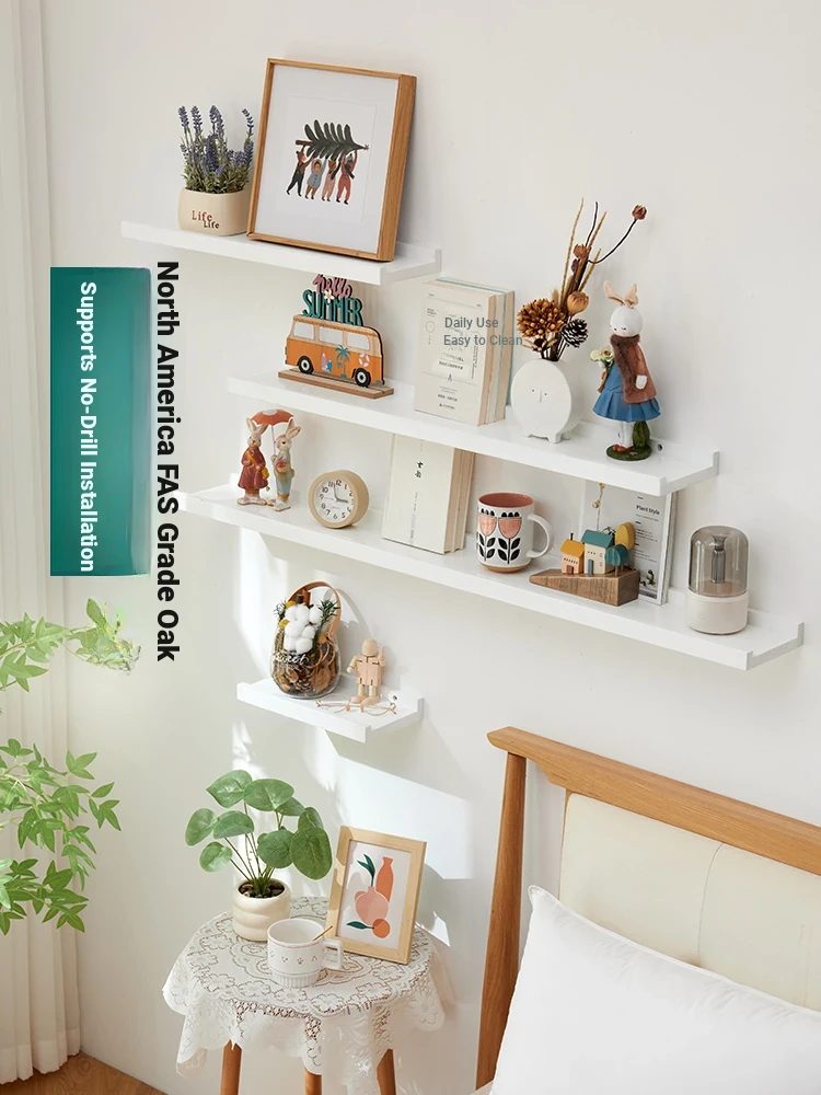 Solid Wood Wall-Mounted Shelf - Stylish Display Rack for Living Room, Dining Area, and TV Wall - No Drilling Required, Perfect for Organizing and Decorating Your Space