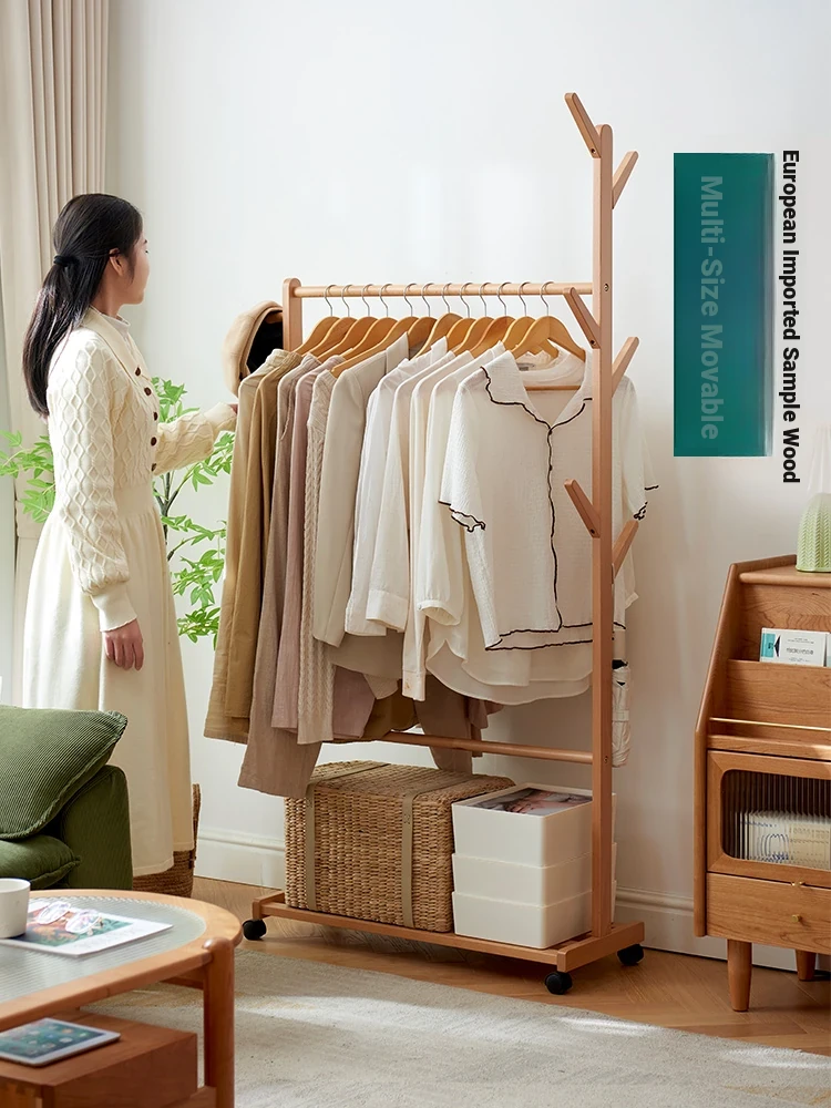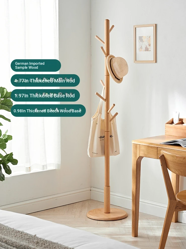 Natural Solid Wood Freestanding Clothes Rack - Movable and Simple Design for Easy Clothes Drying and Storage, Perfect for Bedroom Use - Beech Tree Shaped Coat Hanger