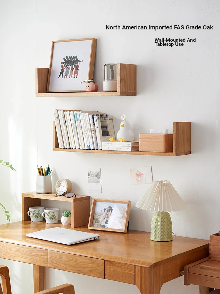 Solid Wood Wall-Mounted U-Shaped Bookshelf - Oak Floating Shelf for Living Room, Stylish Space-Saving Storage and Display Solution, Perfect for Plants and Decor