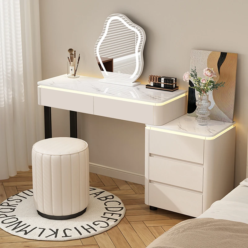 フレンチクリーム風のモダンミニマリスト木製ドレッサー - 小型寝室にもぴったり!化粧台とデスクを一体化したスタイリッシュなデザインで、あなたの日常を華やかに演出します。