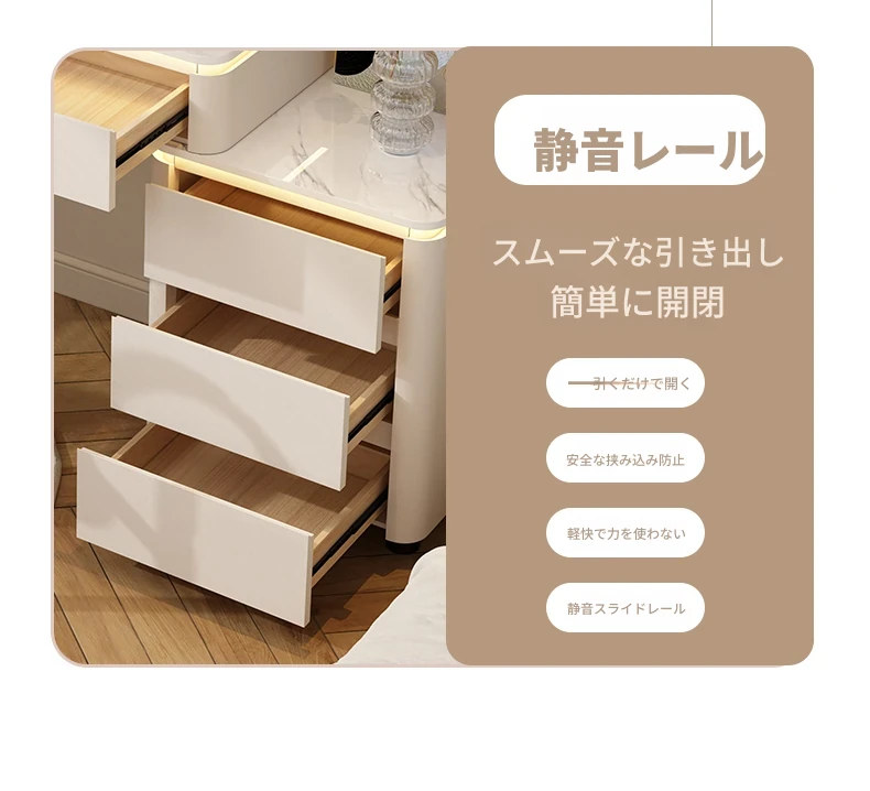80ホワイトテーブル+3段引き出しキャビネットホワイト 鏡なし椅子なし JX-ムードライトタイプ