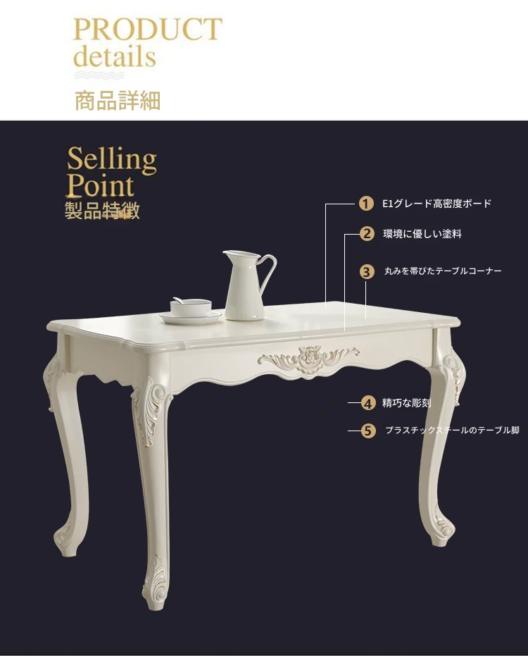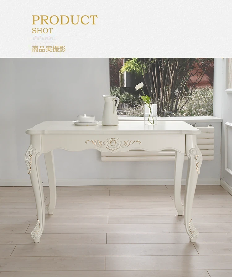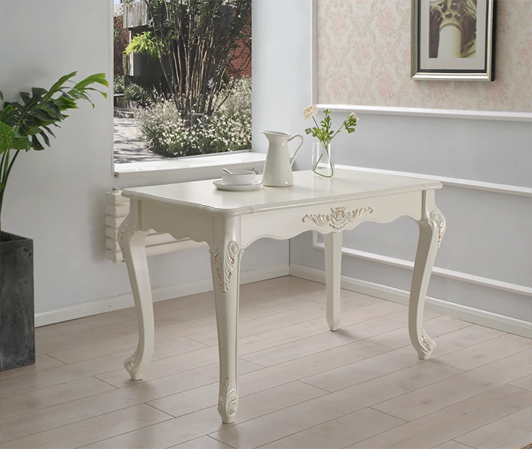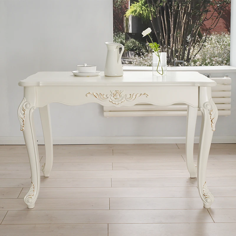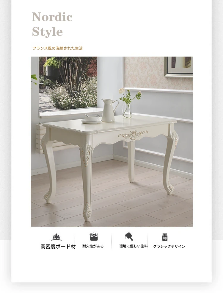 シンプルで洗練された小型長方形ダイニングテーブル|モダンヨーロピアンデザイン|エレガントなフレンチスタイル|家庭用に最適なホワイトテーブルで、食事タイムを特別に演出!