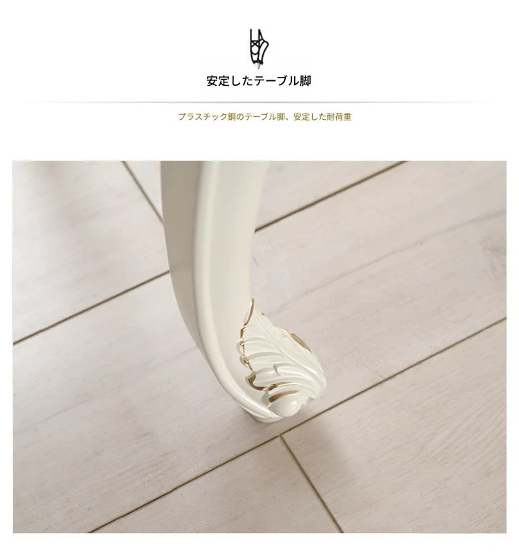 1メートル欧式ダイニングテーブル(アイボリーホワイト金縁)