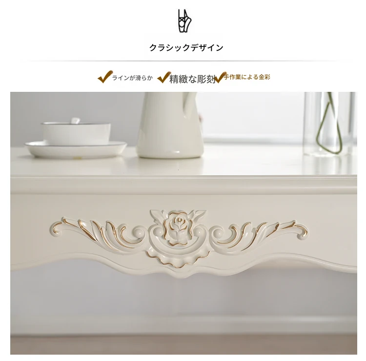 1.2メートル欧式ダイニングテーブル(アイボリーホワイト銀縁)