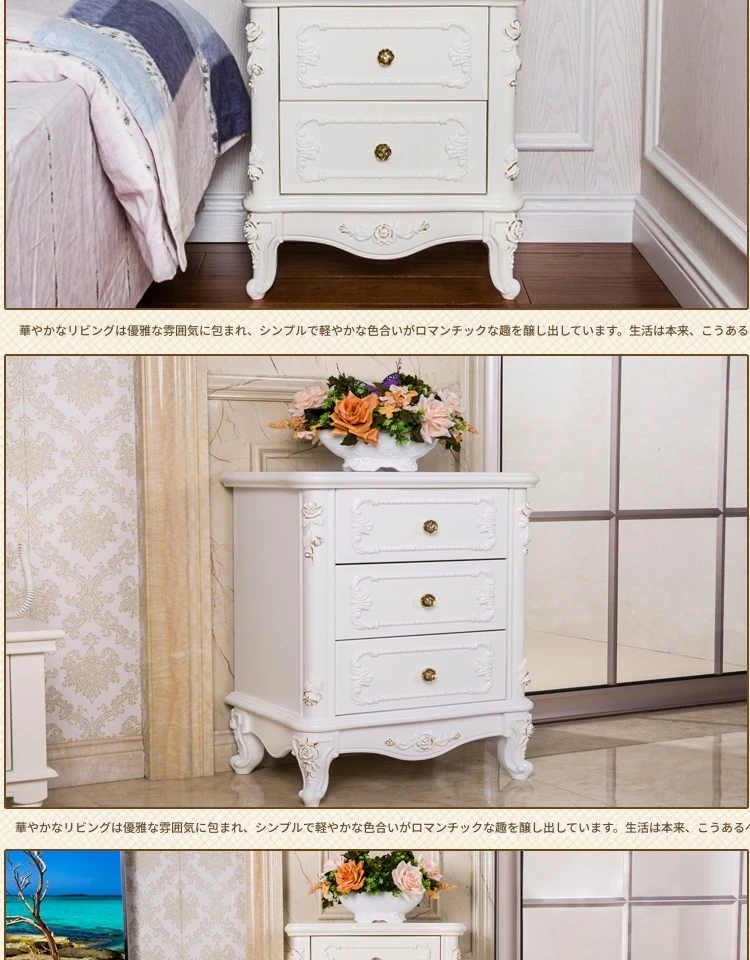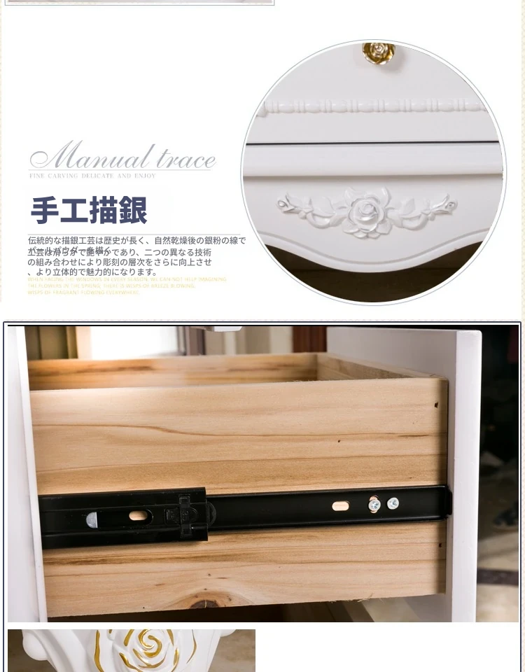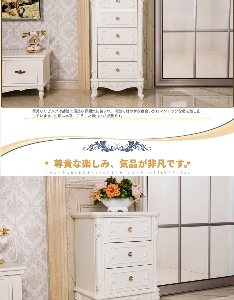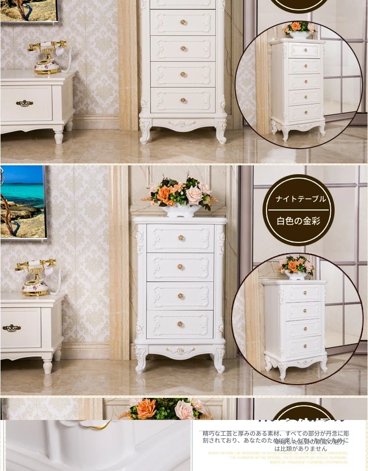 モダンでシンプルなリビング用の韓国風田園スタイルの無垢材彫刻サイドボード。ヨーロッパ風の寝室や北欧スタイルにもぴったりのスリムなデザインで、スペースを有効活用!あなたのインテリアに華やかさを加えます。