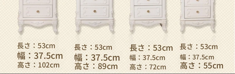 4段チェスト アイボリーホワイト&ゴールド:53*37*90