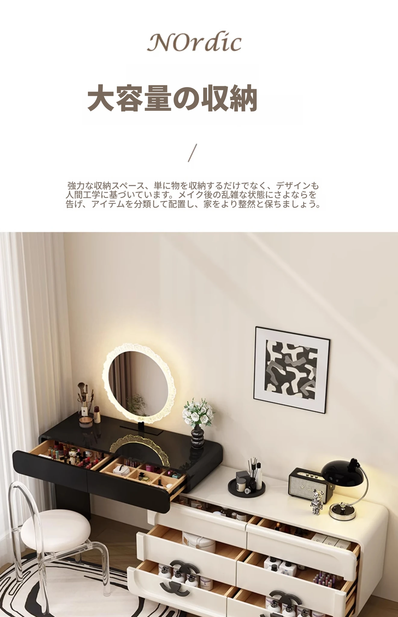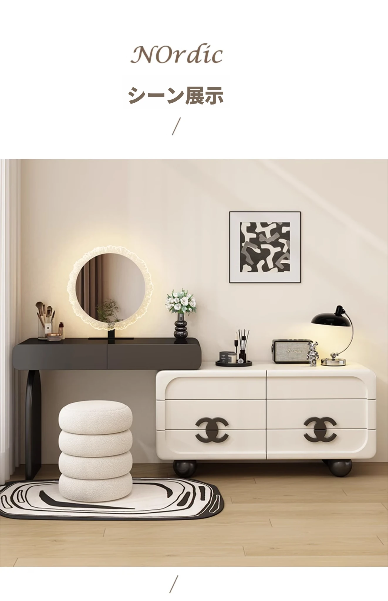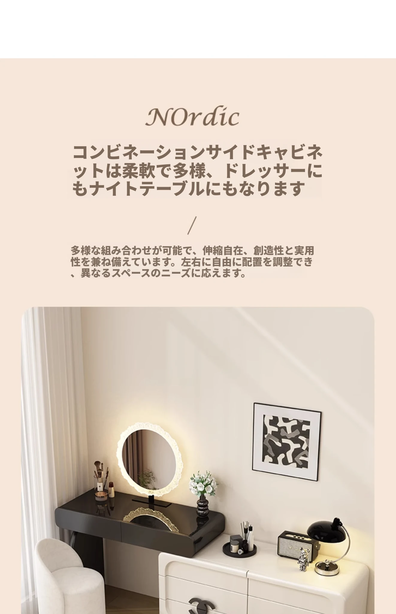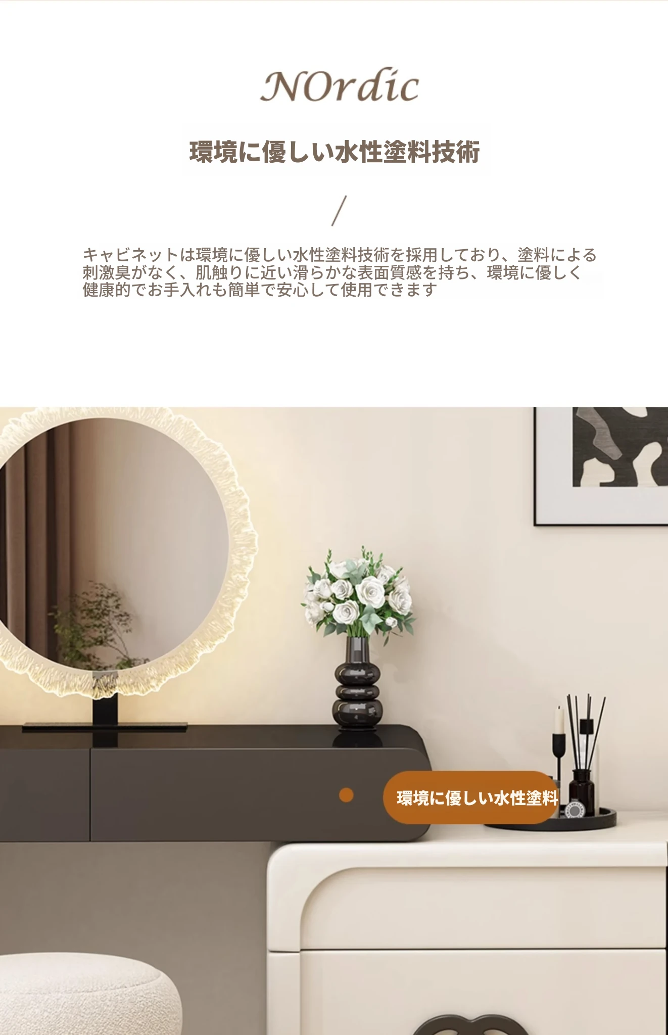 高級感あふれるクリーム風の実木製ドレッサー!現代的でシンプルなデザインの化粧台と収納キャビネットが一体化。快適な寝室にぴったりのスタイリッシュなメイクアップデスク!