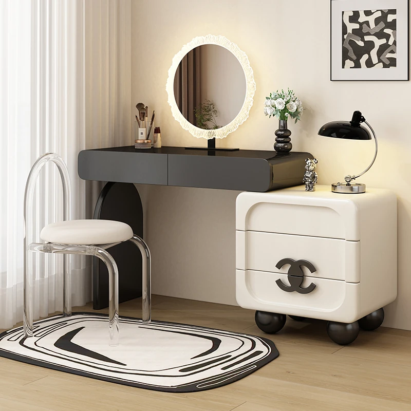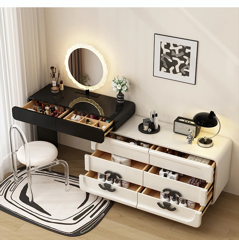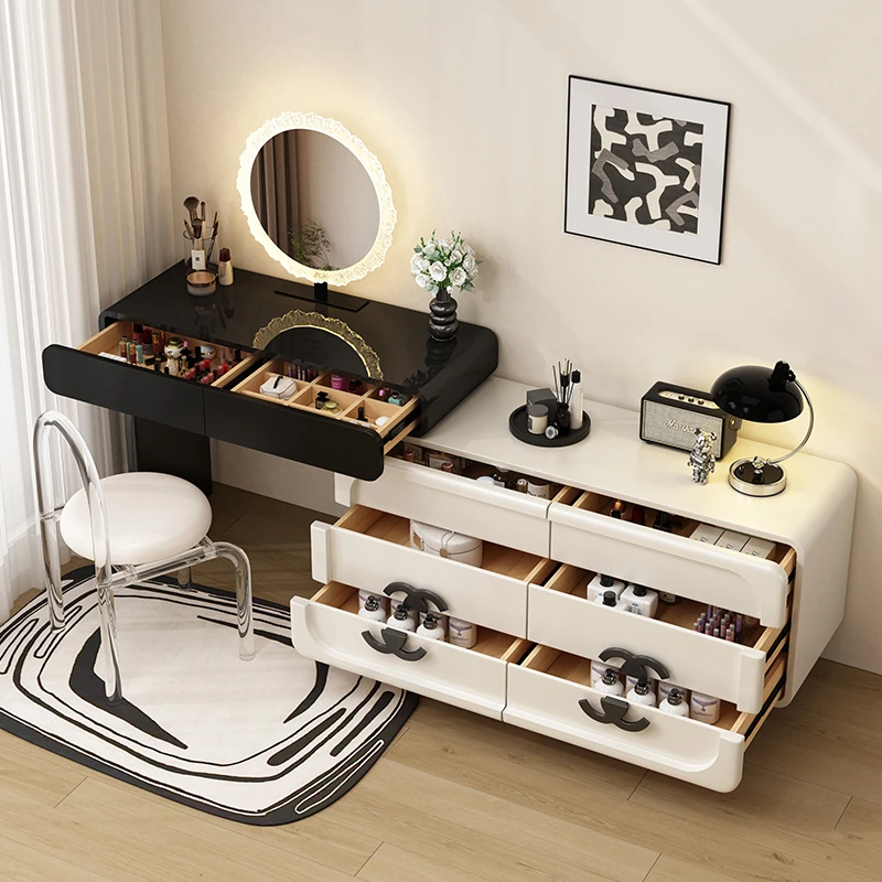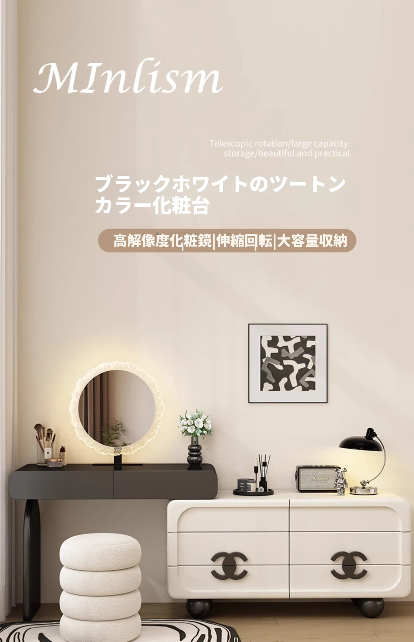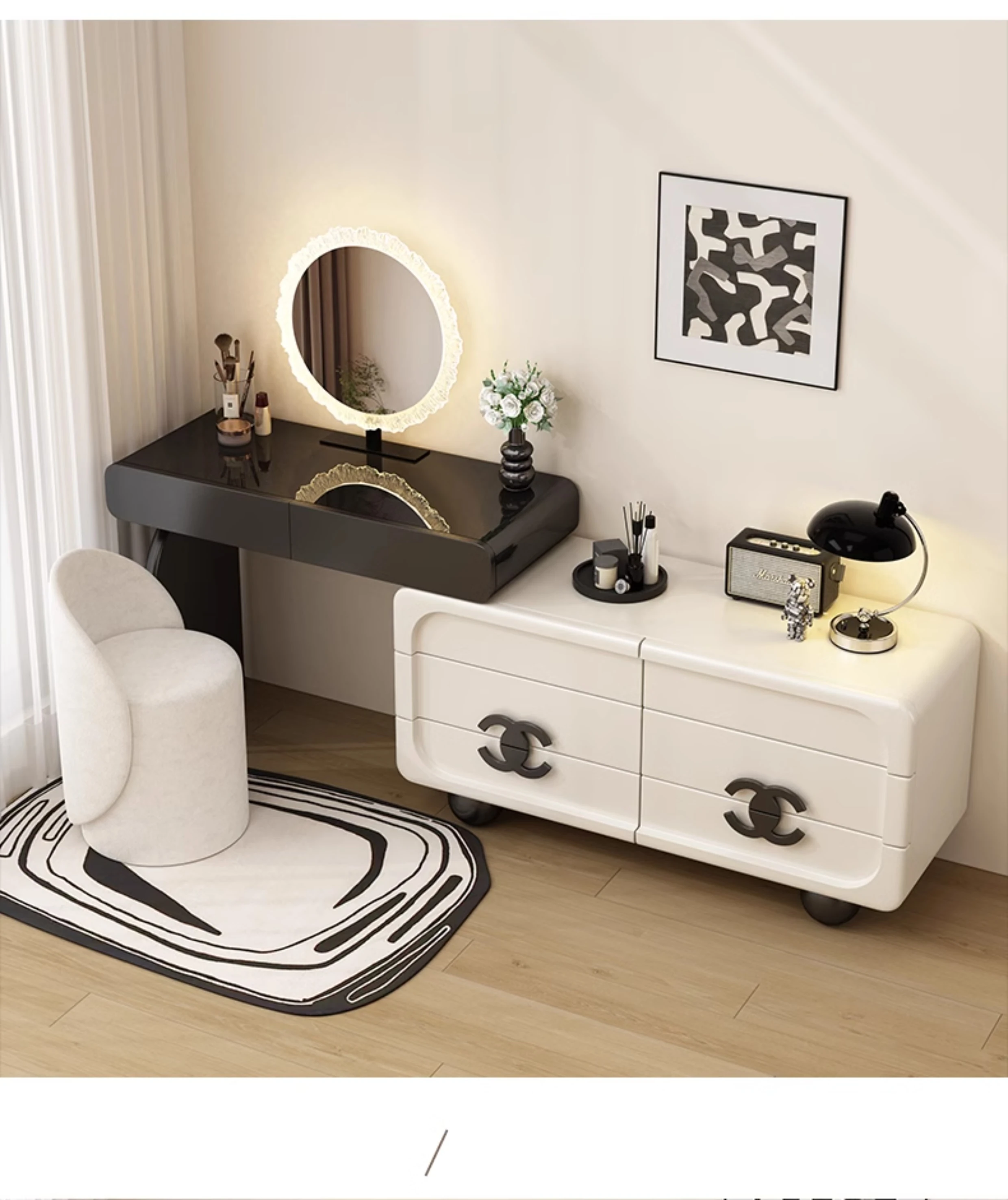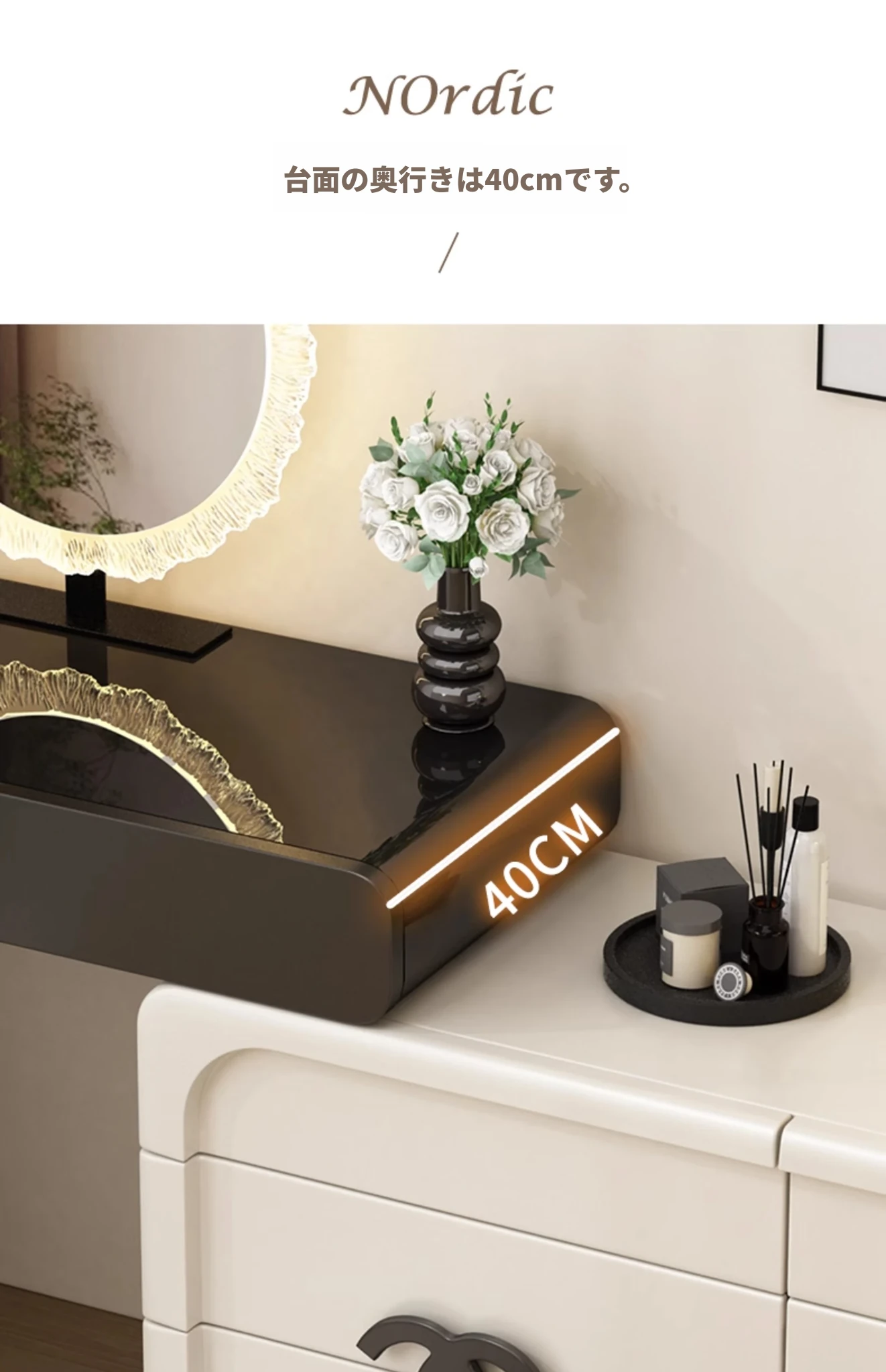 高級感あふれるクリーム風の実木製ドレッサー!現代的でシンプルなデザインの化粧台と収納キャビネットが一体化。快適な寝室にぴったりのスタイリッシュなメイクアップデスク!