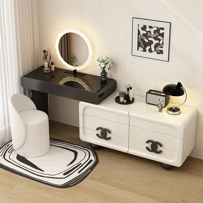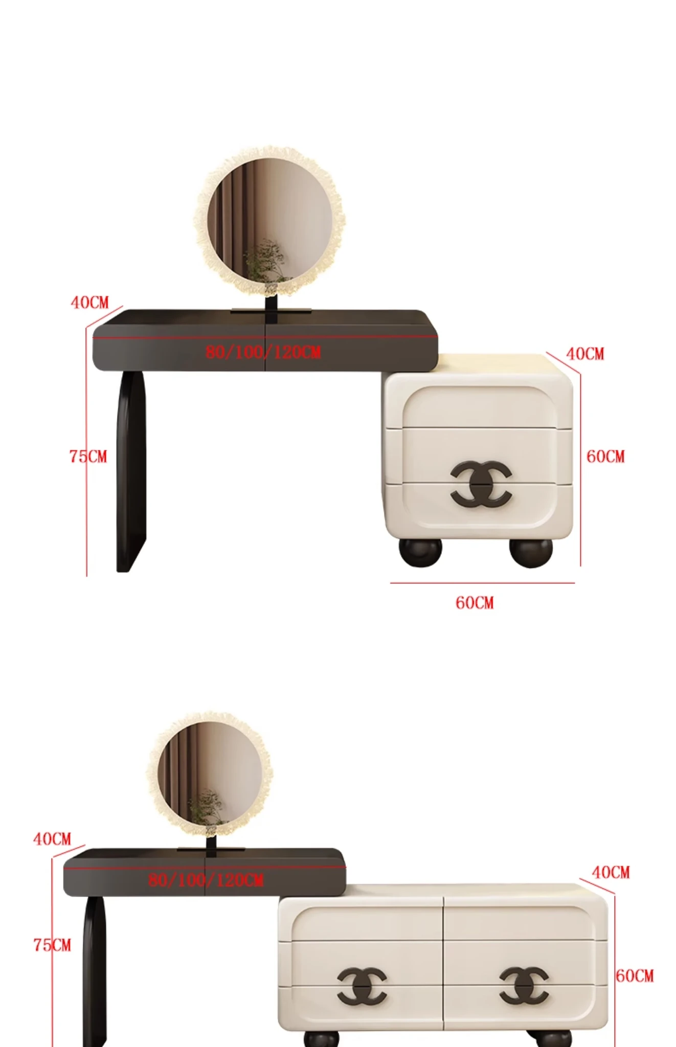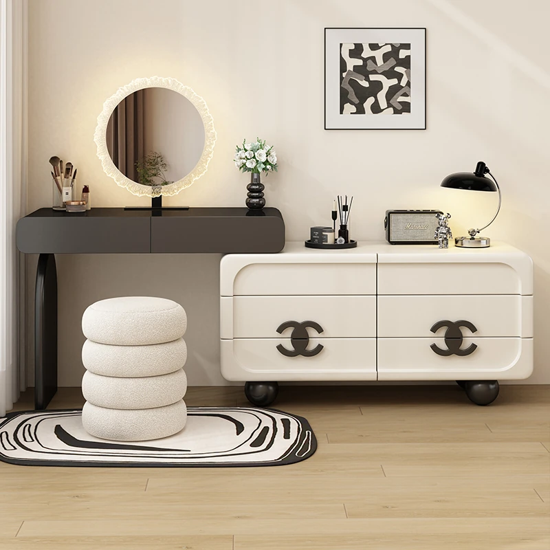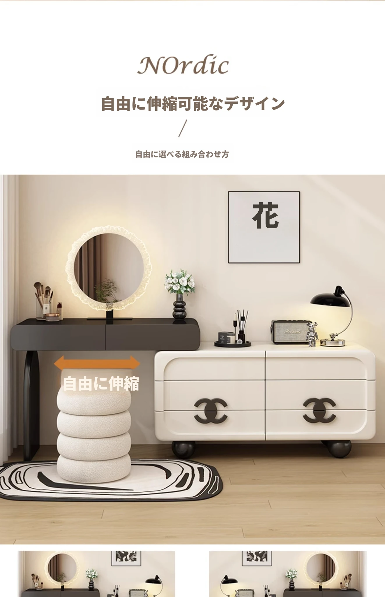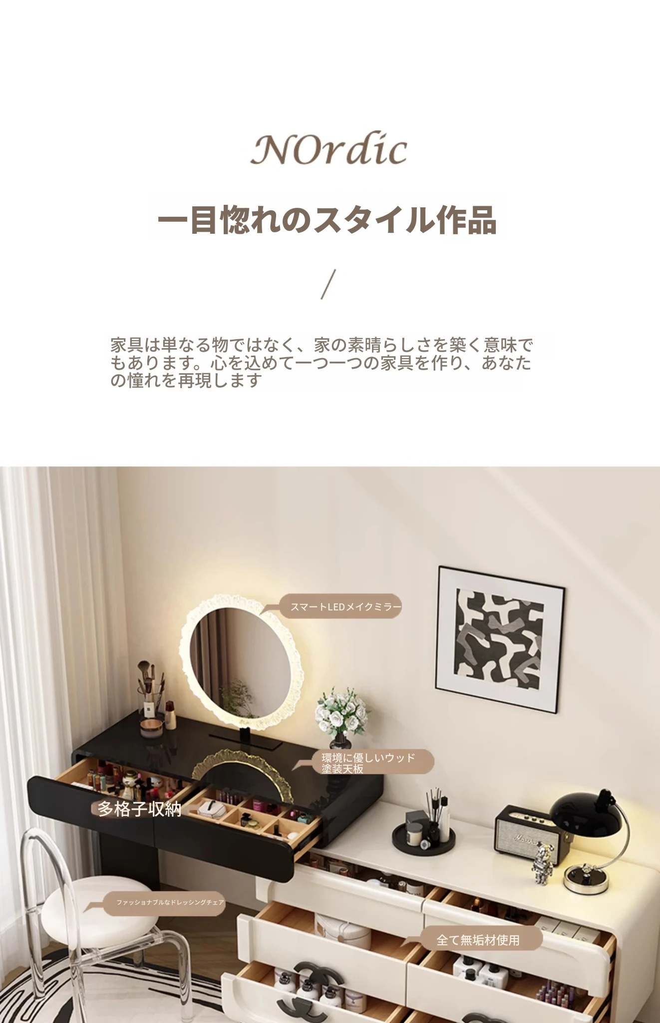 高級感あふれるクリーム風の実木製ドレッサー!現代的でシンプルなデザインの化粧台と収納キャビネットが一体化。快適な寝室にぴったりのスタイリッシュなメイクアップデスク!