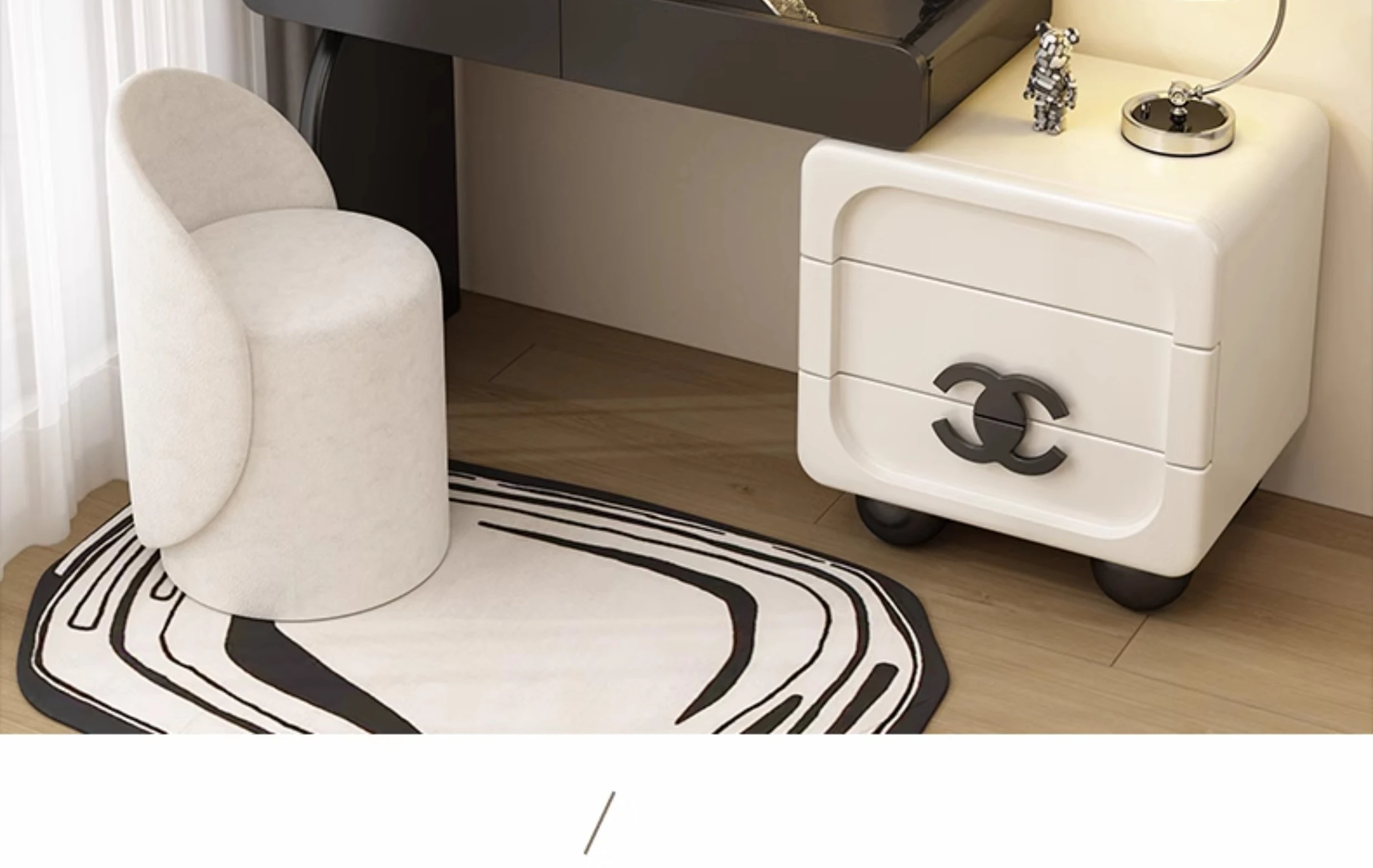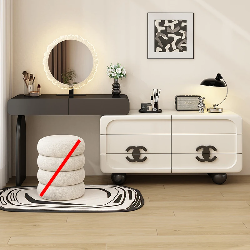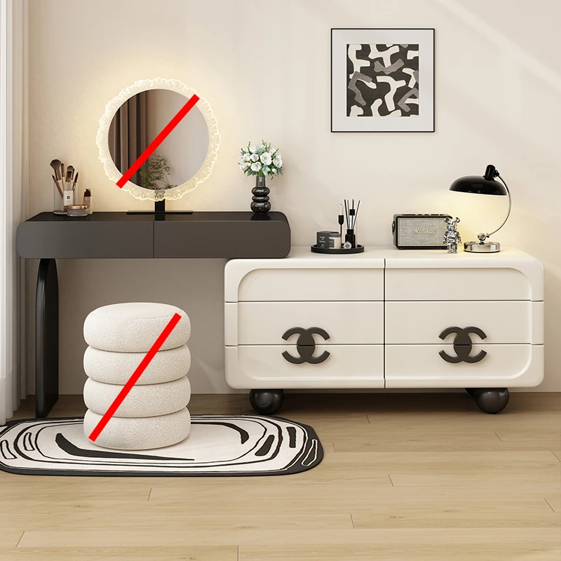 80黒テーブル+六引き黒白キャビネット+花の鏡+ラム毛の丸いスツール白 8800-JX
