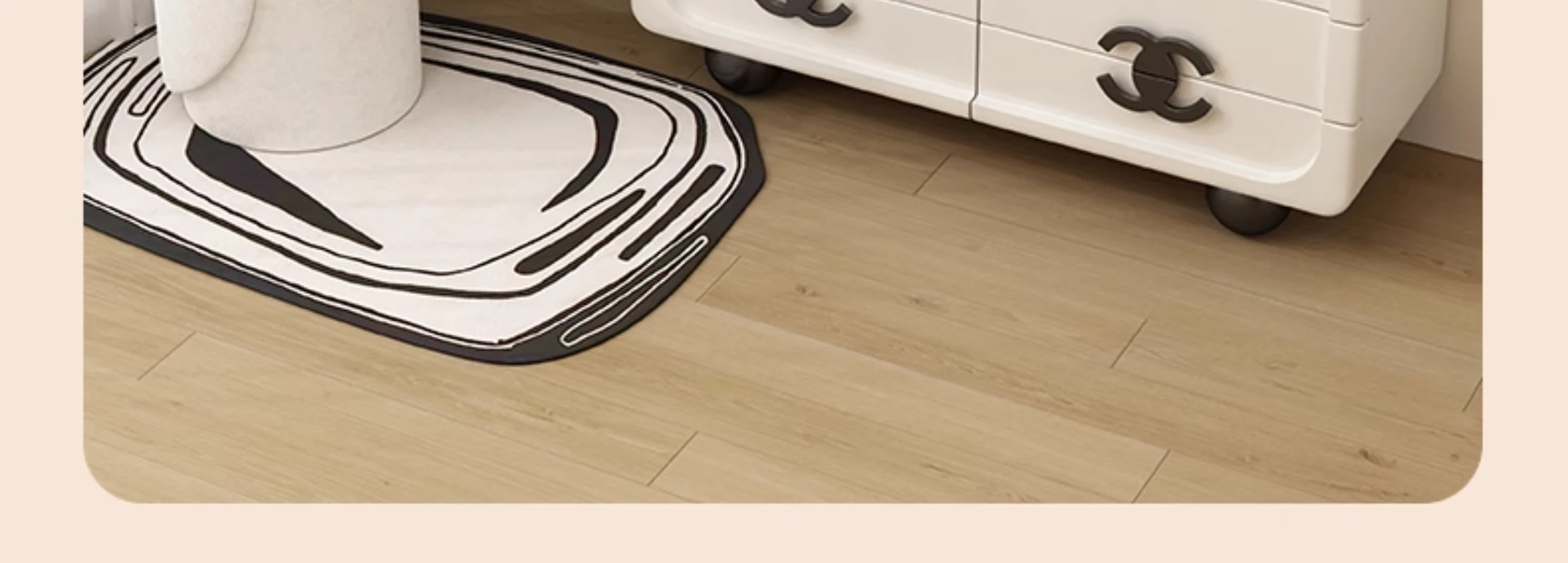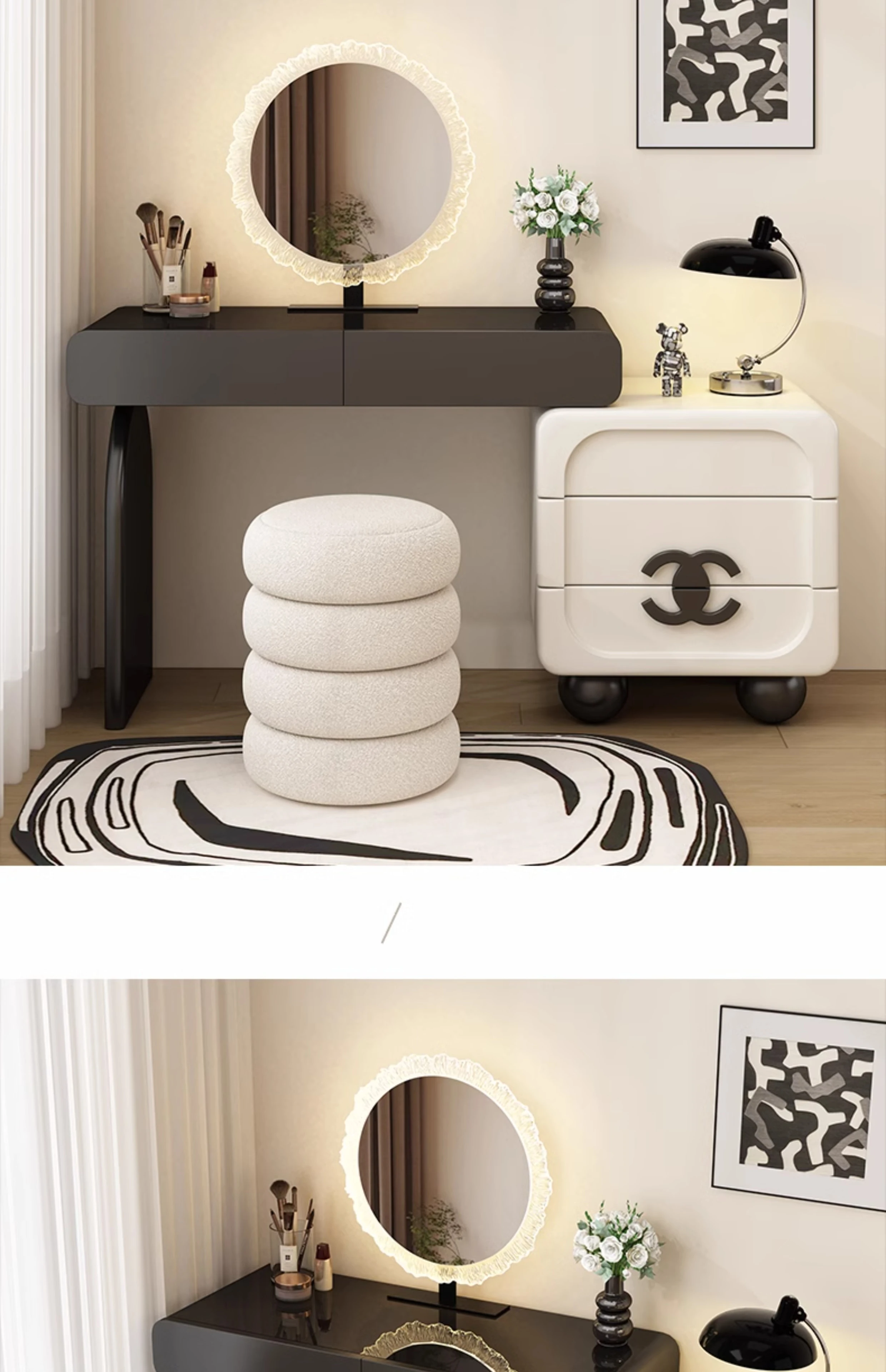 100黒テーブル+六引き黒白キャビネット+花の鏡+ラム毛の丸いスツール白 8800-JX